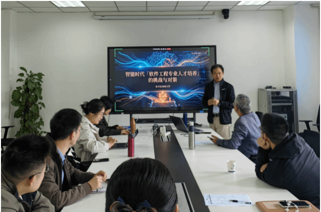 讲座最后,与会教师围绕课程考核优化、教学方法创新等核心问题展开热烈研讨,结合学院人才培养实际,深入探讨软件、AI与行业需求深度融合的具体路径,为复合型人才培养目标落地建言献策。本次讲座立足AI时代产业需求,为学院培养高素质软件工程人才提供了新思路、新路径,对提升教师教学能力、优化人才培养模式具有重要指导意义,也为学院持续深化人才培养改革、打造特色鲜明的“软件*AI+X”复合型软件人才培养高地筑牢了基础。