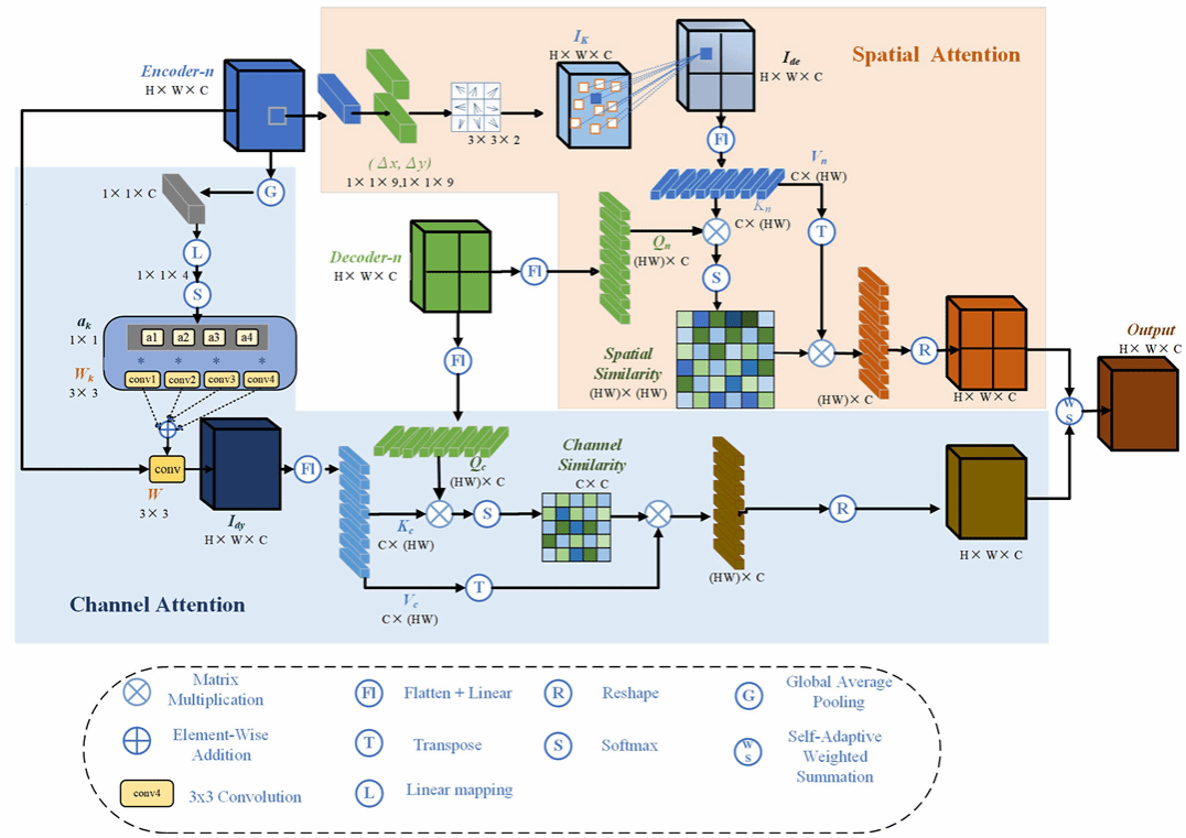 第一篇论文《DDCTNet: A Deformable and Dynamic Cross-Transformer Network for Road Extraction From High-Resolution Remote Sensing Images》(作者中文名:高利鹏,周义青,田江涛,蔡文静)。该工作通过设计一个变形和动态的交叉Transformer模块,分别从空间和通道维度通过非局部信息的学习增强道路与周围背景的差异,从而一定程度上解决了由于道路遮挡产生的道路提取呈锯齿状的问题。