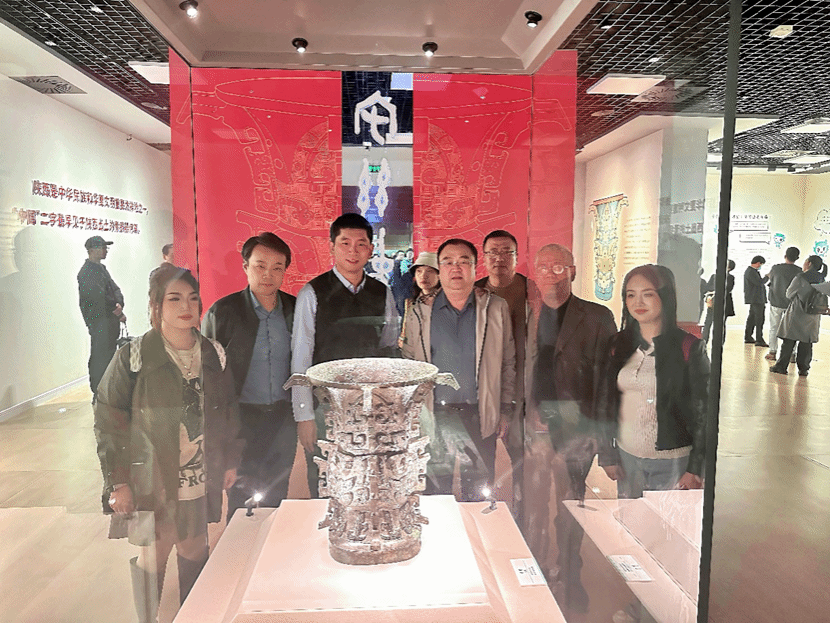 参观纪念馆结束后,大家又来到宝鸡青铜器博物院。宝鸡青铜器博物院是中国最大的青铜器博物馆。大家在讲解员的带领下依次参观“青铜器之乡、宅兹中国、周礼之邦、秦肇之路”四个专题展厅室,全体党员在认真聆听和沉浸式体验中,全面了解了宝鸡悠久的青铜史、周朝礼制下的辉煌盛世,深刻感受到周秦优秀传统文化的魅力以及华夏文明的博大精深,进一步激发了党员干部的爱国热情和民族自豪感,更加坚定了文化自信。值得一提的是,大家仔细观瞻了国宝重器“何尊”,认真学习“宅兹中国”铭文背后的故事,切身体会学校何尊组雕“隐姓埋名,为国铸剑”的深刻寓意。