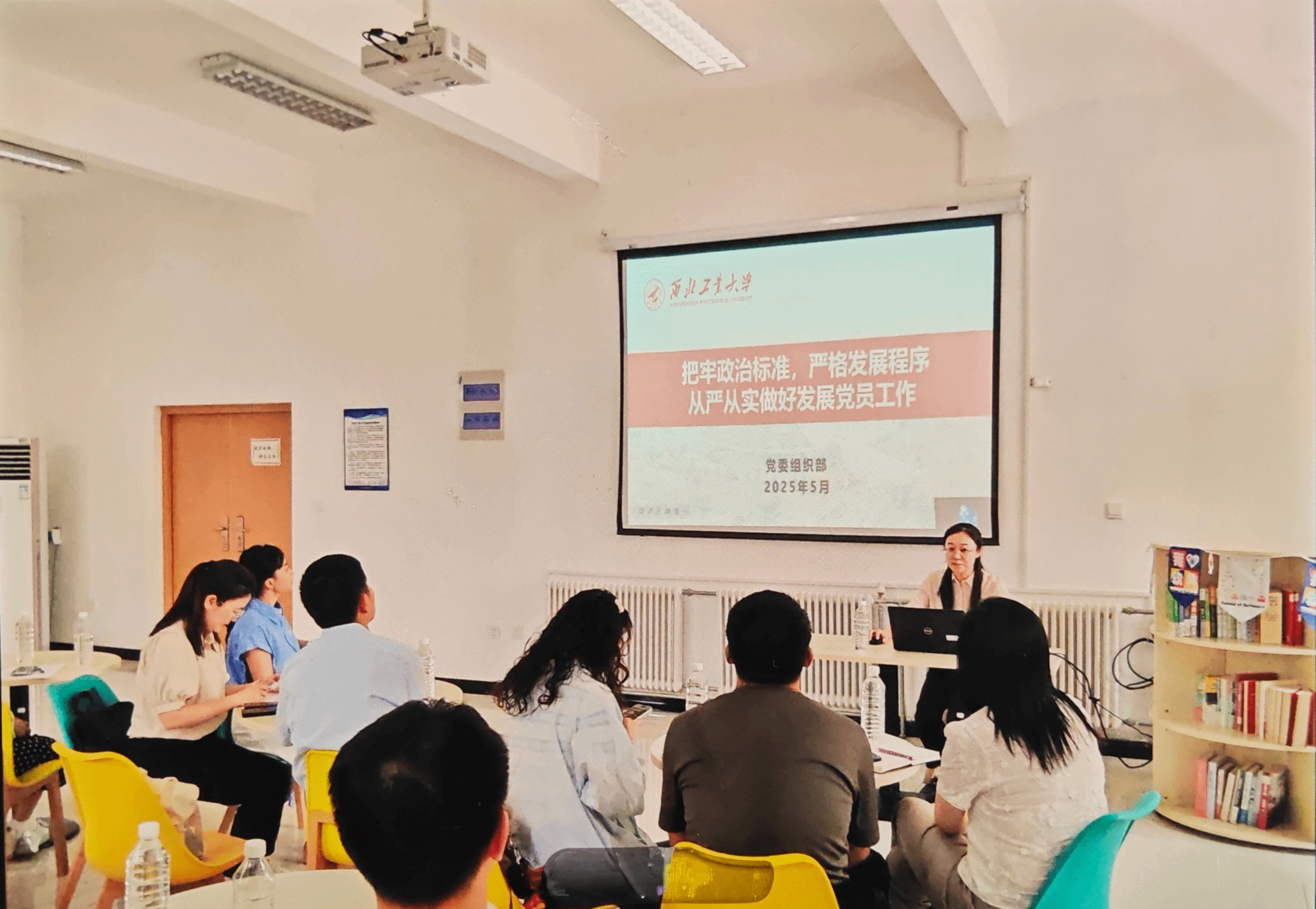陈博在总结中指出,本次培训会主题鲜明、内容丰富、成效显著。组织部两位老师的培训既有理论高度,又具实践深度,为学院党建工作提供了专业指导和宝贵经验。希望大家进一步提高政治站位,深刻认识发展党员工作的重要意义,严格把好政治关、程序关、质量关;进一步强化责任担当,以“小切口”推动“大落实”,将标准化规范化要求落实到支部建设的每个环节;进一步注重工作实效,坚持用心用情用力,充分发挥党组织“触角”作用。