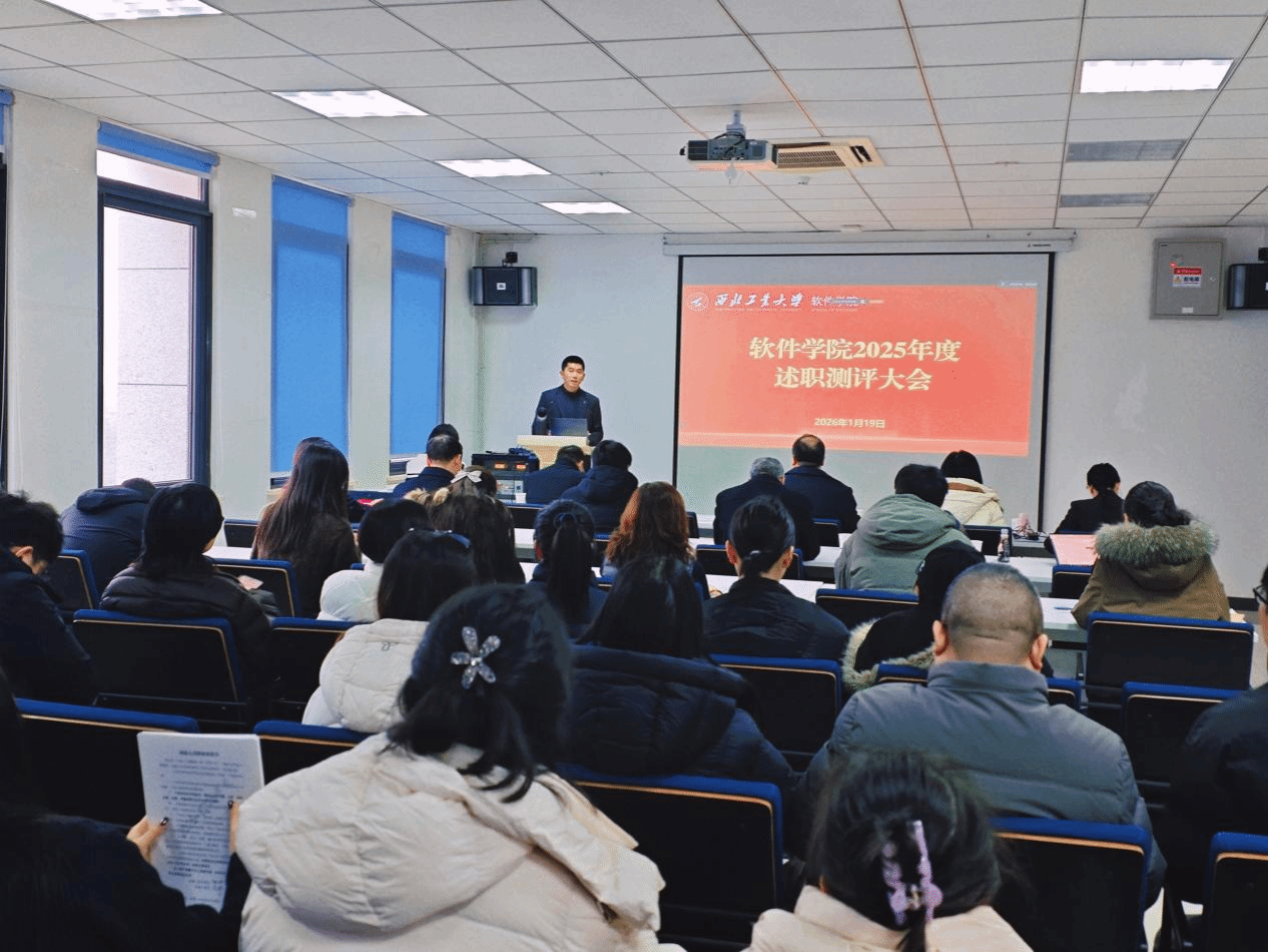 在启翔楼401室召开2025年度全院教职工大会暨中层干部述职测评大会。会议采用线上线下相结合的方式,学院党政领导班子与70余名师生共同参加。大会由学院党委书记李晗主持。
