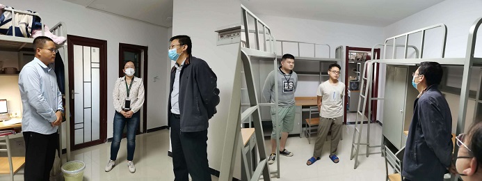 5月14日,在稳步有序安排好学生返校接待工作后,学院党委书记陈洪亮、副书记张琨、辅导员齐春晓看望已经搬入北村入住的同学们,关心同学们的搬迁情况和生活状况。