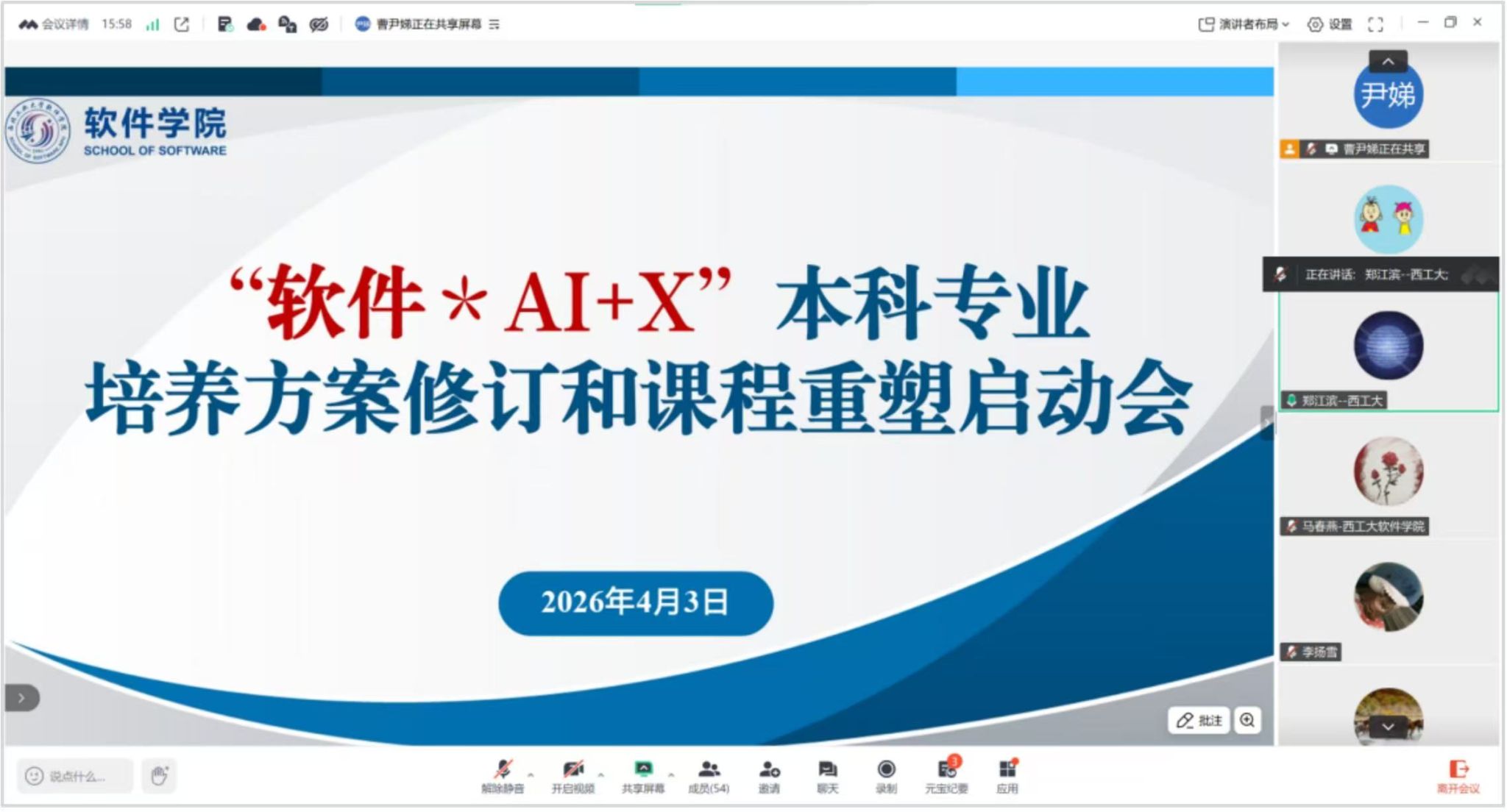 线上召开全体教师大会,正式启动“软件*AI+X”本科专业培养方案修订和课程重塑工作。院长郑江滨、党委书记李晗、副院长马春燕等出席会议,全体教师参加。会议由马春燕主持。