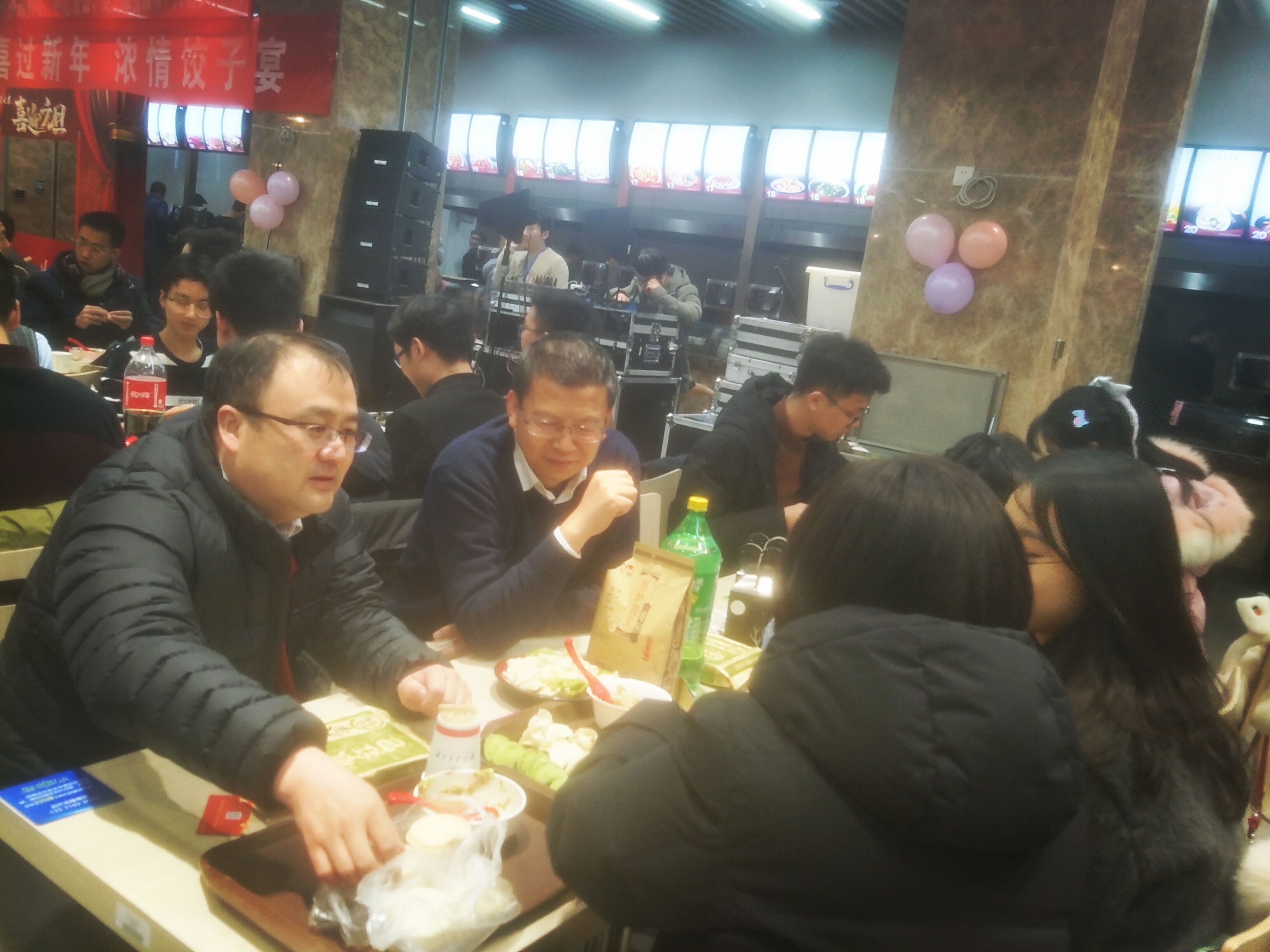 下午四点左右的学生第一餐厅已是人山人海,人满为患。学生们在安全员的引导下早早地进入餐厅,感受新年氛围,着手包饺子。随后张艳宁、陈洪亮、郑江滨、王犇、黎昞、齐春晓老师先后加入包饺子队伍。在这拥挤的食堂中,来自不同学院,不同民族乃至不同国家的老师和同学们各自展现着其包饺子的工艺, 此时此刻,老师与同学们之间的距离再次拉近,欢声笑语,在热闹的气氛中感受着节日带来的快乐。