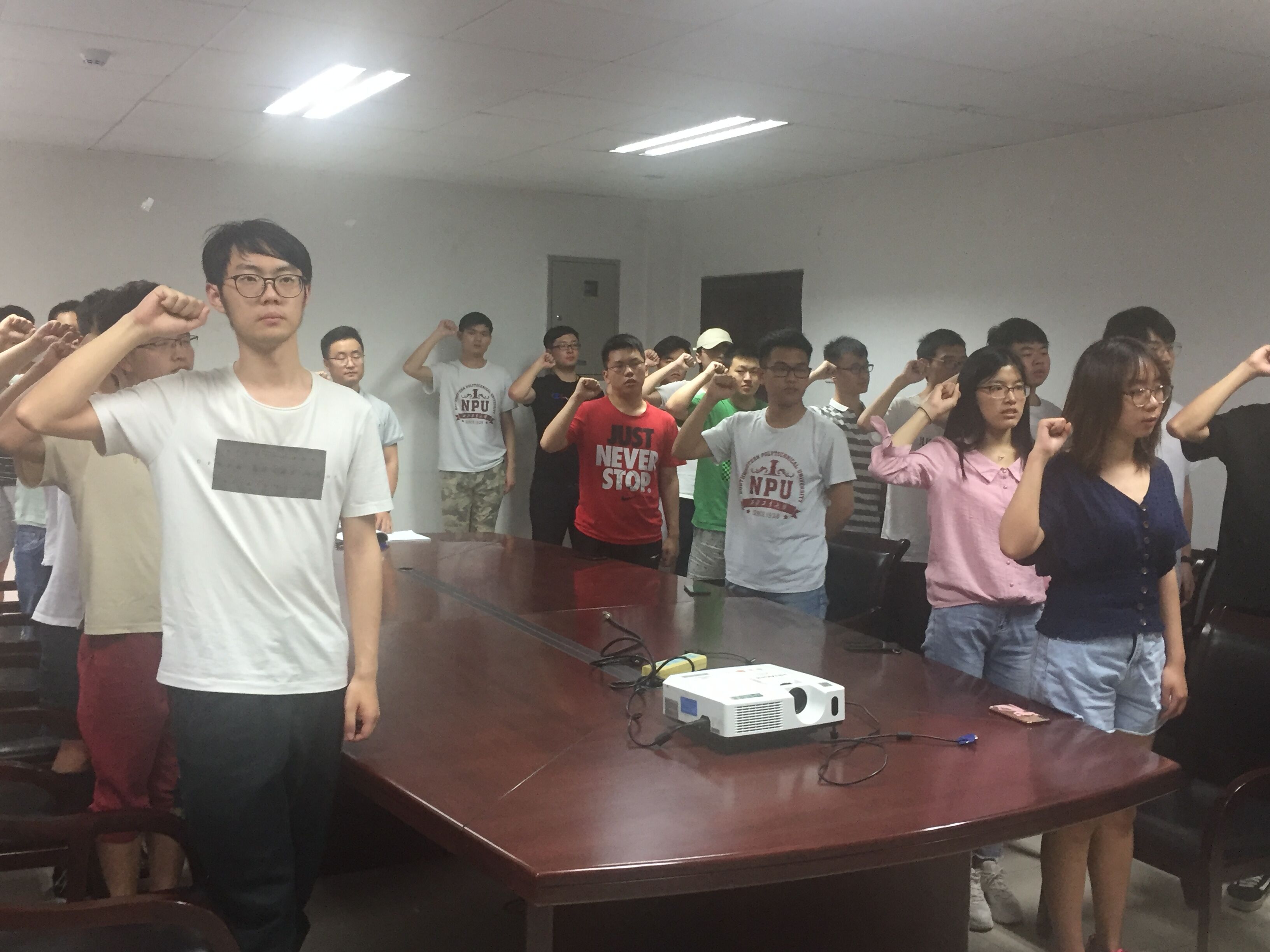 第二项是结合大学经历,分享“不忘初心,牢记党员身份”的典型故事。王硕刚老师讲述了自己在学校之外十分注意自己的言行,因为他时刻牢记自己是一位西工大人,要维护西工大的形象。同时,他提醒同学们,毕业后,在社会中,所有党员要牢记党员的身份,要维护共产党的形象。