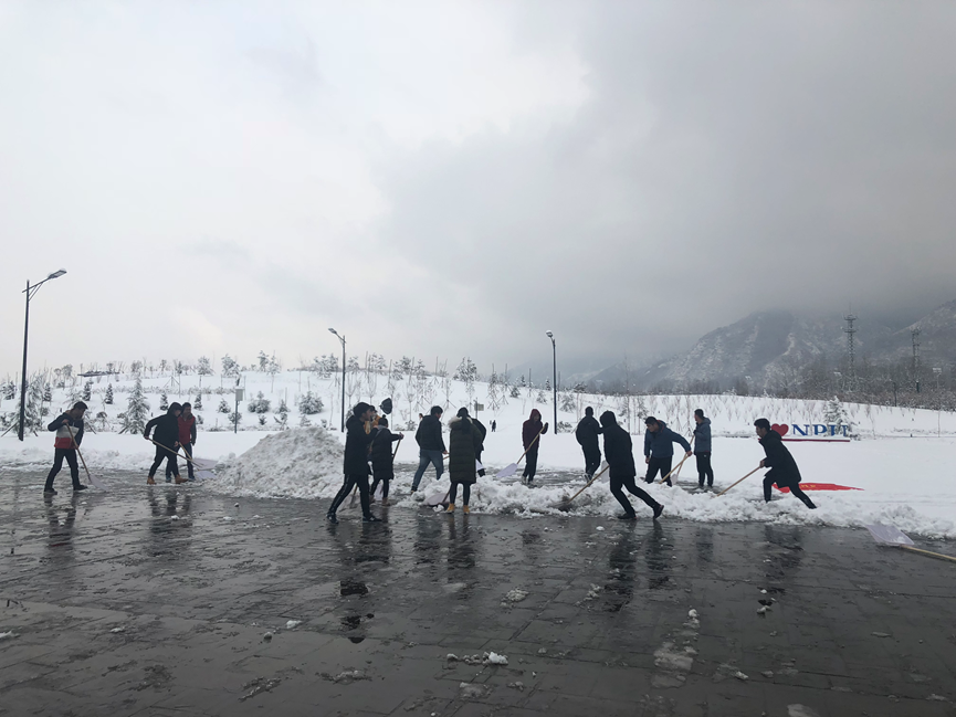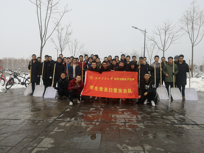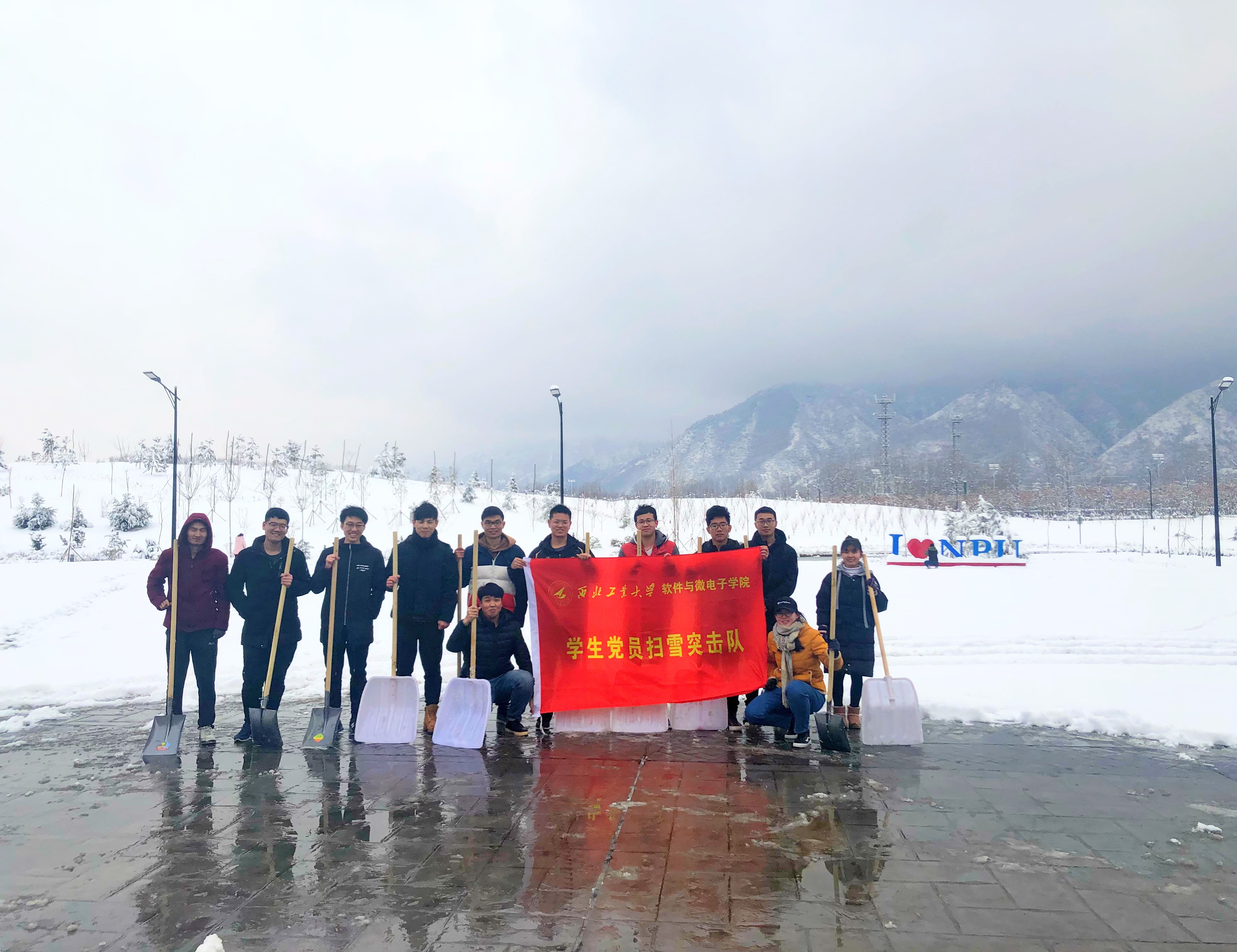 扫雪护行,情暖人心。为保障全校师生出行方便和安全,充分发挥学生党员的先进性,促进学生德智体美劳全面发展,加强学生对学校的热爱之情,软件与微电子学院在第一时间就号召师生党员开始了道路扫雪除障活动。学院学生辅导员杜逸芸、樊超、陈智通老师,以及部分研究生、2017级、2018级本科生参加了此次扫雪活动。