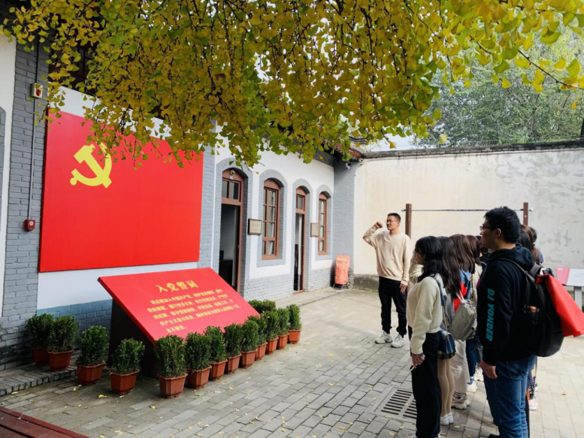 同学们跟着讲解员从一号院开始,参观了彭德怀住室、救亡室、理发室、总务科等,聆听着解说员生动的讲解,同学们仿佛置身于那个炮火纷飞的年代。看着一幅幅珍贵的图片、一件件简朴的军衣,同学们对全心全意为人民服务的根本宗旨,自力更生、艰苦奋斗的创业精神有了更深的感悟。在参观结束后,同学们重温了入党誓词,伴随着铿锵坚定的誓词声,同学们认真缅怀革命先烈。