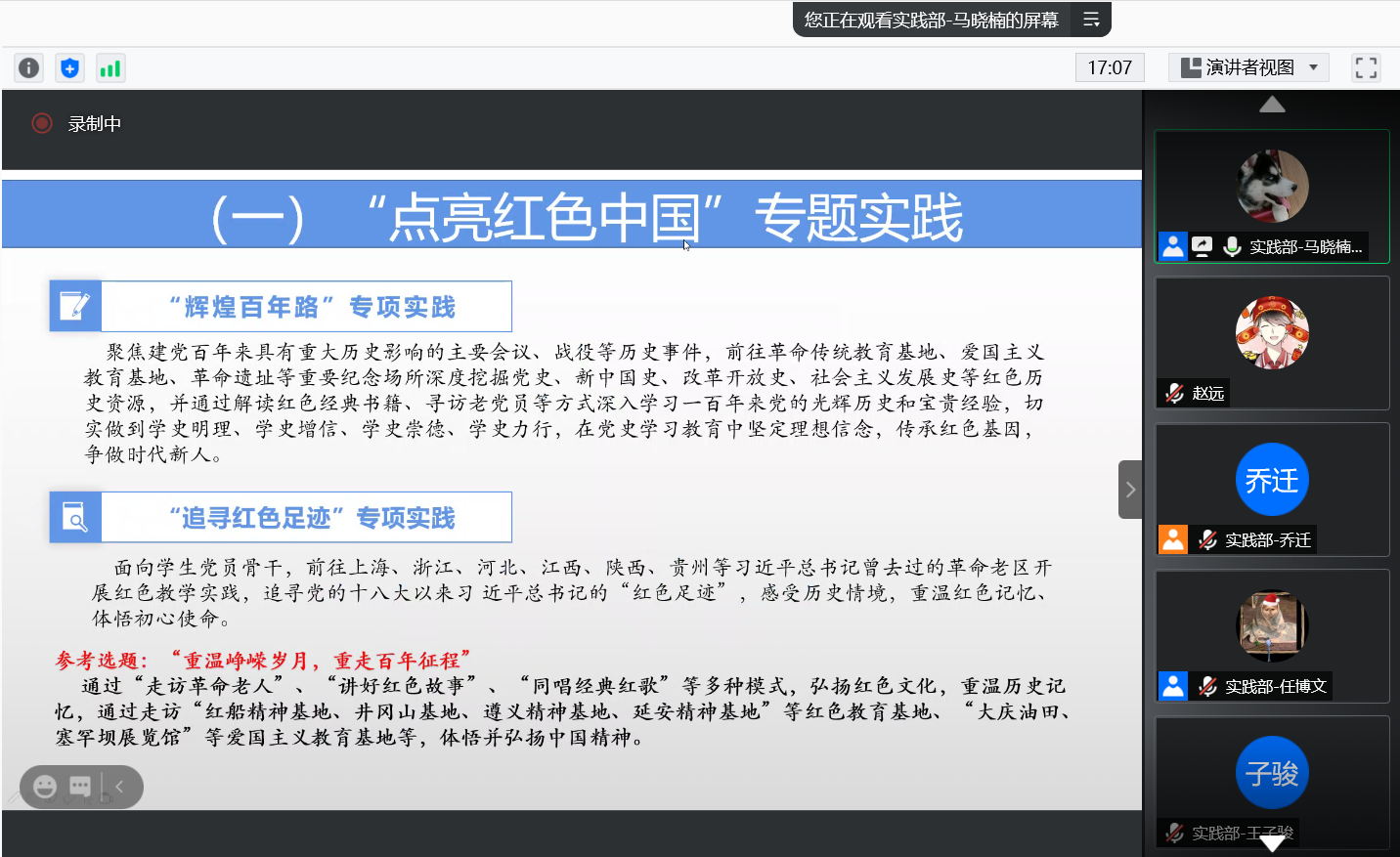 暑期社会实践动员会顺利落下帷幕。本次会议旨在解读实践通知、答疑相关问题,会议由实践部乔迁主持,实践部工作人员及2020级学生参与本次线上会议。