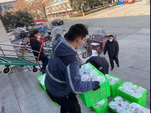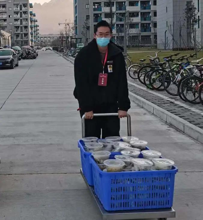 (李家琛为学生宿舍送餐)