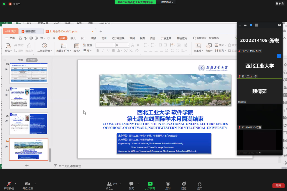 魏倩茹老师宣布本次国际学术月活动圆满结束,并表示活动的结束只是暂时的,学院接下来会不定时举办学术讲座,让同学们有更多了解国际前沿技术的机会!