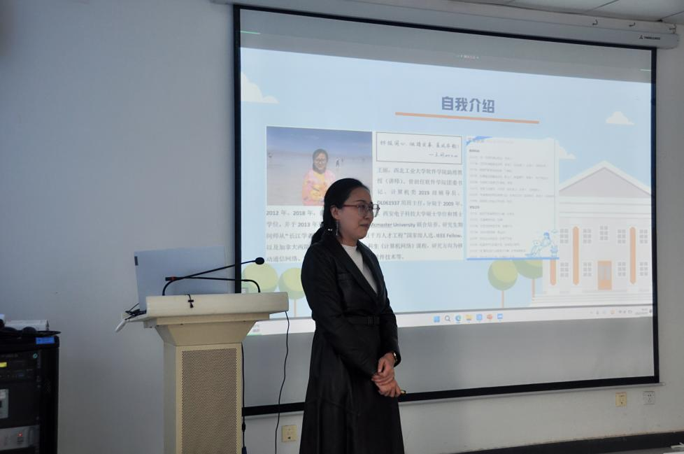教师王丽进行交流分享辅导员工作。会议由张龙主持。