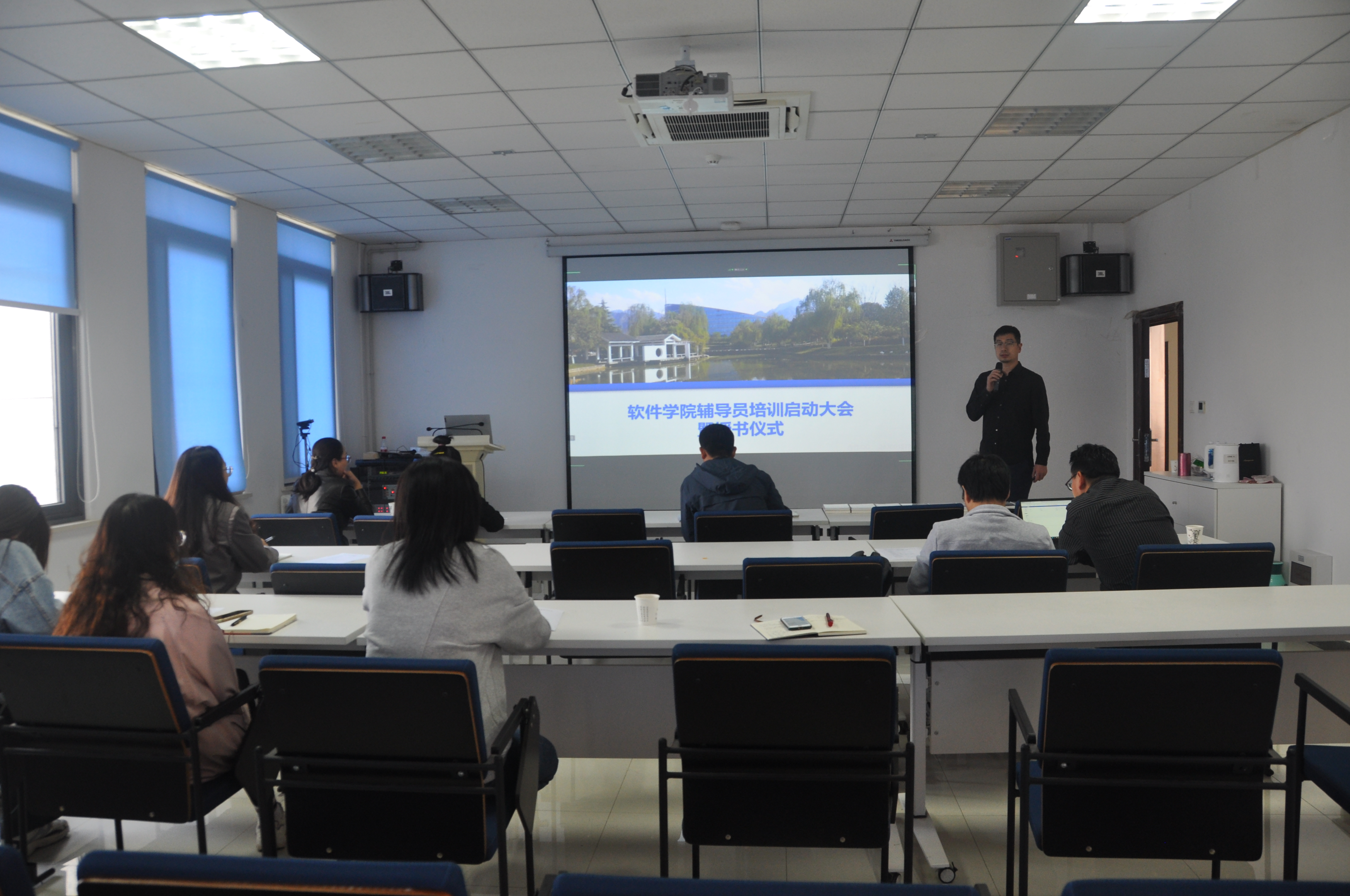 张龙表示,此次培训工作是进一步贯彻落实学校关于辅导员队伍建设工作的具体措施,是进一步提升学院辅导员队伍教育实践能力的具体行动,希望大家聚焦提升业务能力和水平,聚力做实做好学生工作,确保培训有收获、学习有成效、交流有启发,为学院辅导员队伍建设和学生工作的开展增能助力。