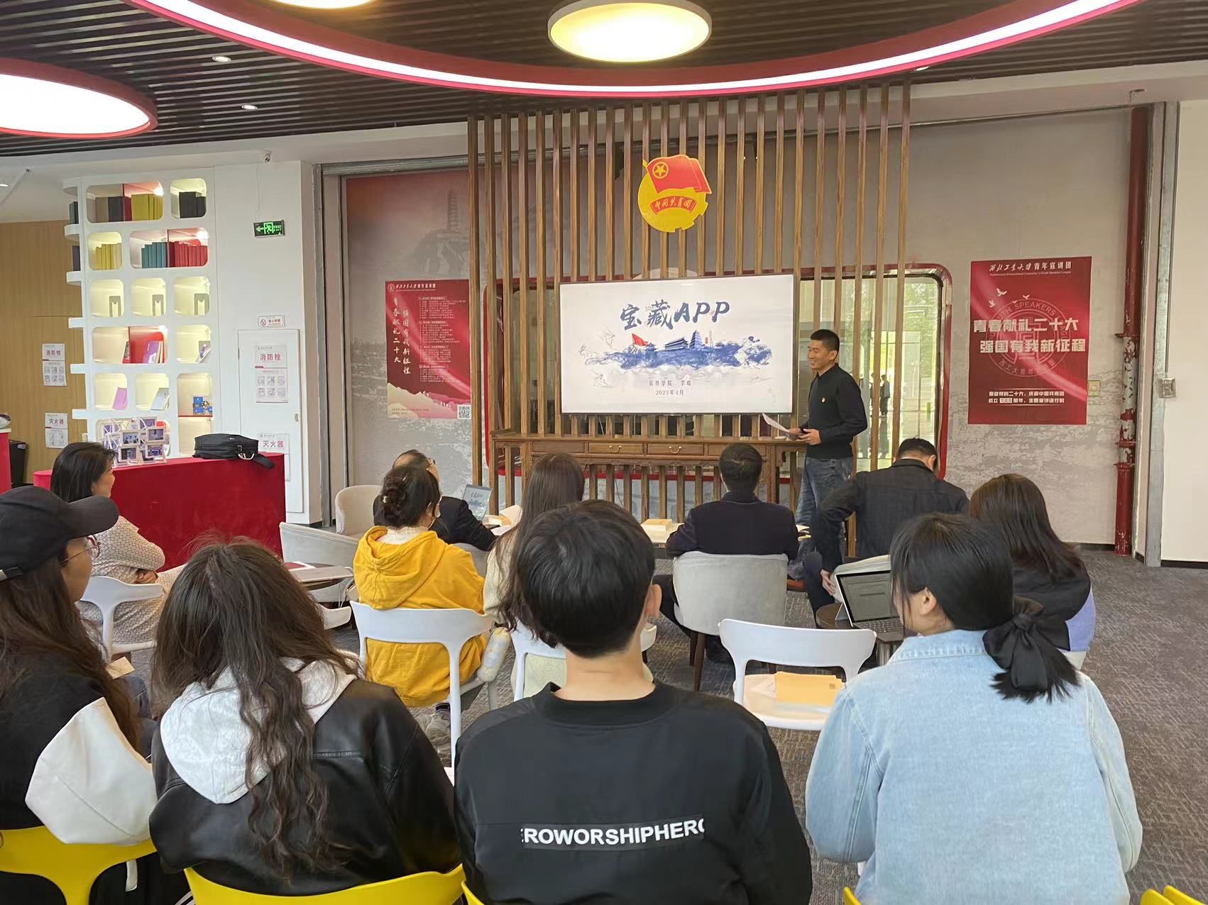 在书屋讲党课。李晗为党支部书记生动的讲授《工欲善其事,必先利其器》党课,讲解了学习强国APP的使用与丰富的学习资源,鼓励大家抓住工作、学习间隙,利用碎片化的时间通过“学习强国”APP“听理论”“听原著”“学原文”,以读书砥砺初心。