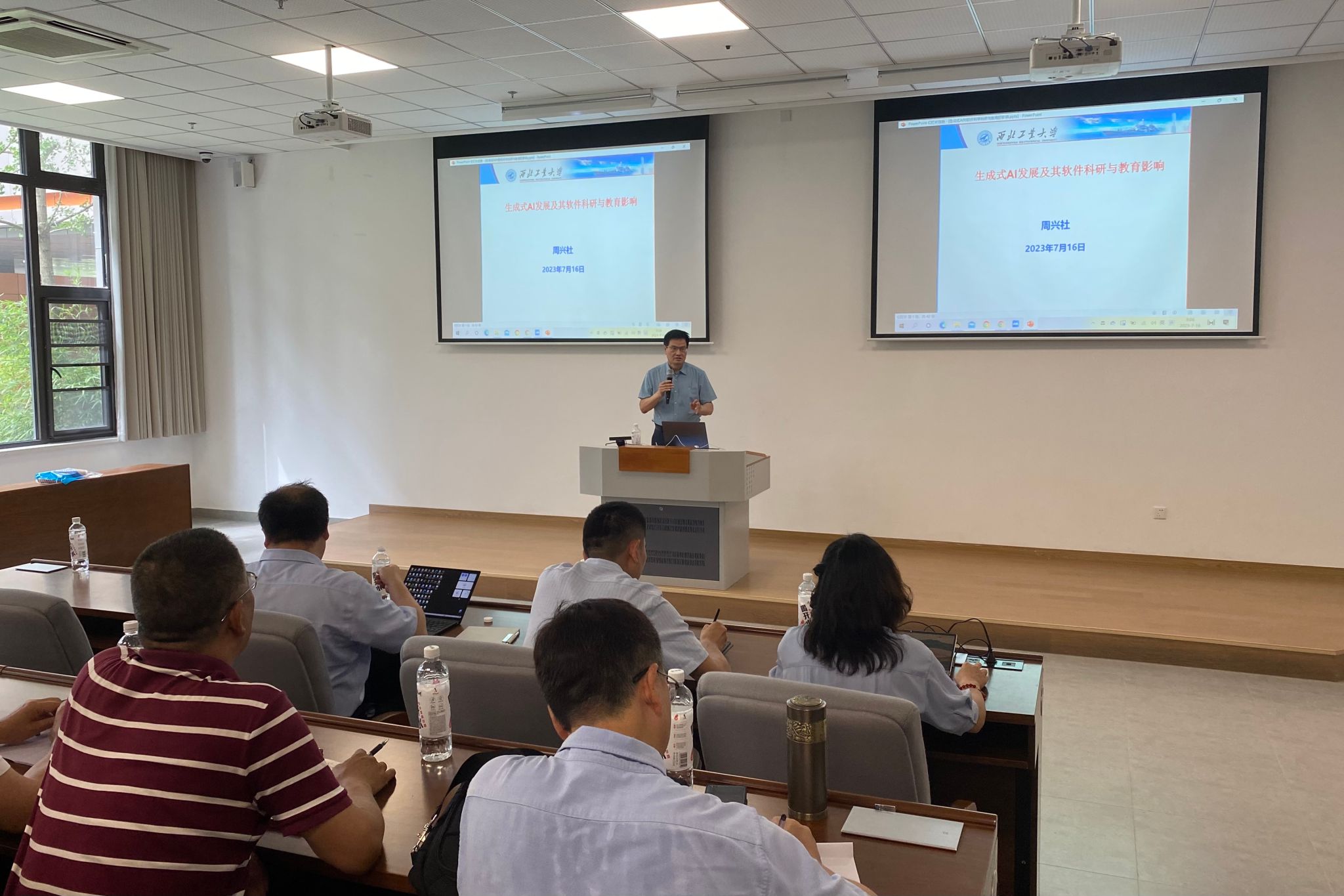 邀请周兴社教授为青年教师做“生成式AI发展及其软件科研与教育影响”学术报告,从AI最新发展趋势、生成式AI大模型、AI与软件编程及对高等教育的影响等几方面与参会教职工进行了分享,鼓励大家紧跟生成式AI发展趋势,启发青年教师正确利用人工智能技术做好教学与科研。