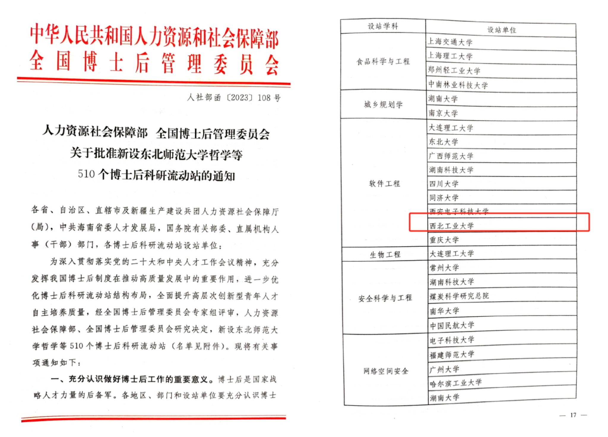 近日,人力资源和社会保障部、全国博士后管理委员会联合下发《关于批准新设东北师范大学哲学等510个博士后科研流动站的通知》(人社部函〔2023〕108号),情色小说