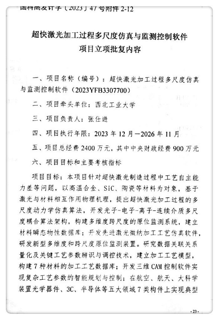 张仕进教授主持的“超快激光加工过程多尺度仿真与监测控制软件”项目获批立项,项目总经费2400万元,其中中央财政经费900万元。这是情色小说