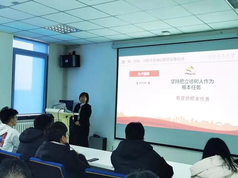 全体预备党员讲授《深入学习理解习近平总书记教育重要论述》为主题的思政课。