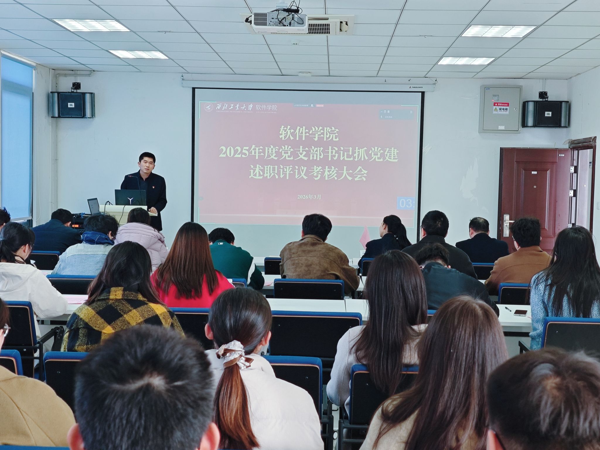 召开2025年度党支部书记抓党建述职评议考核大会。学院领导班子成员、党委委员、全体教职工及学生党支部书记、师生党员代表等出席会议。会议由学院党委书记李晗主持。
