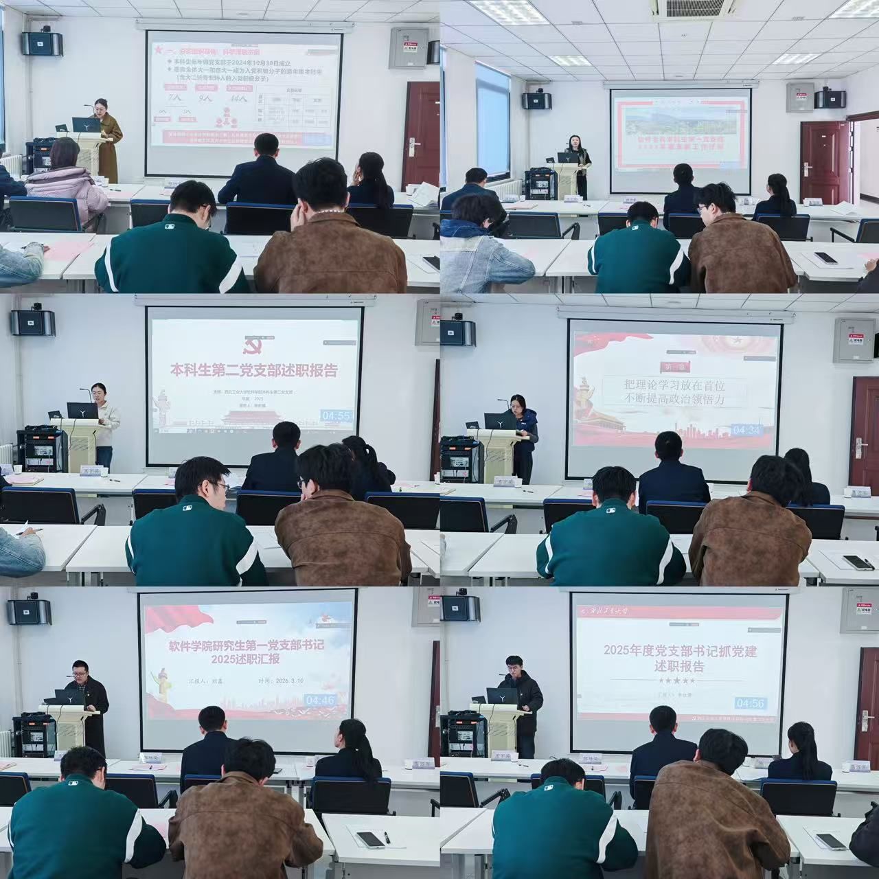 会上,15位党支部书记依次进行现场述职。述职内容聚焦深入学习贯彻习近平新时代中国特色社会主义思想,着力强化党支部政治功能和组织功能,全面落实基层党建重点任务,扎实做好师生思想政治教育工作,不断压实全面从严治党主体责任等方面。各党支部书记全面汇报了年度工作的主要做法、实际成效,深刻剖析了当前存在的问题与不足,并明确了下一步的改进思路与具体举措。
