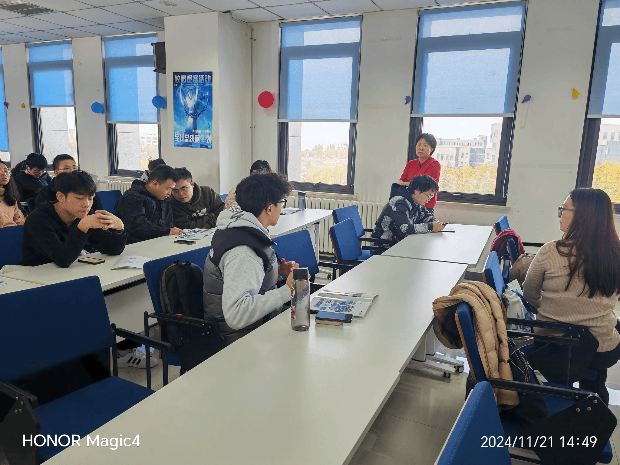 周玲介绍了学生创新创业实践工作的开展情况,并为大家准备了内容详实的工大翱翔众创空间的宣传手册,重点说明了学生创新创业项目培育、孵化服务、政策支持等情况,细致讲解了工大翱翔众创空间学生创新创业团队的入孵条件、入孵流程。