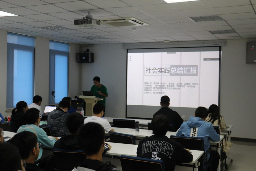 团委召开暑假社会实践分享会,会议以线上线下相结合的形式开展,学院党委副书记张龙,2022级本科生学生工作助理罗兴行及优秀实践队代表、优秀实践个人、新生班干部线下参会,学院团委书记、2022级本科生辅导员张记国,团委副书记、2021级本科生学生工作助理胡雅心及2021级、2022级本科生线上参会,会议由学院实践部部员罗正天主持。