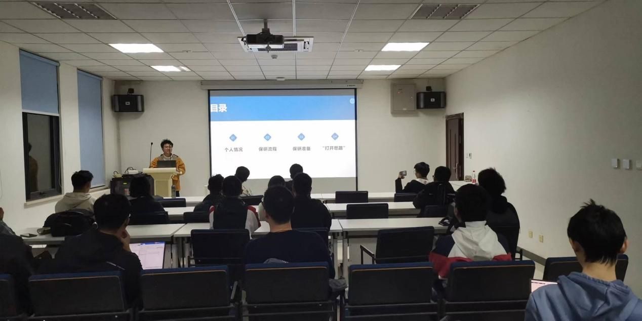 于11月20日邀请范豪爽,卢军汀,石一鹏,冯雪扬四位19级优秀保研生,在启翔楼401开展了一场主题为“保研答疑”的分享会,20级保研范围内的本科生踊跃参加。