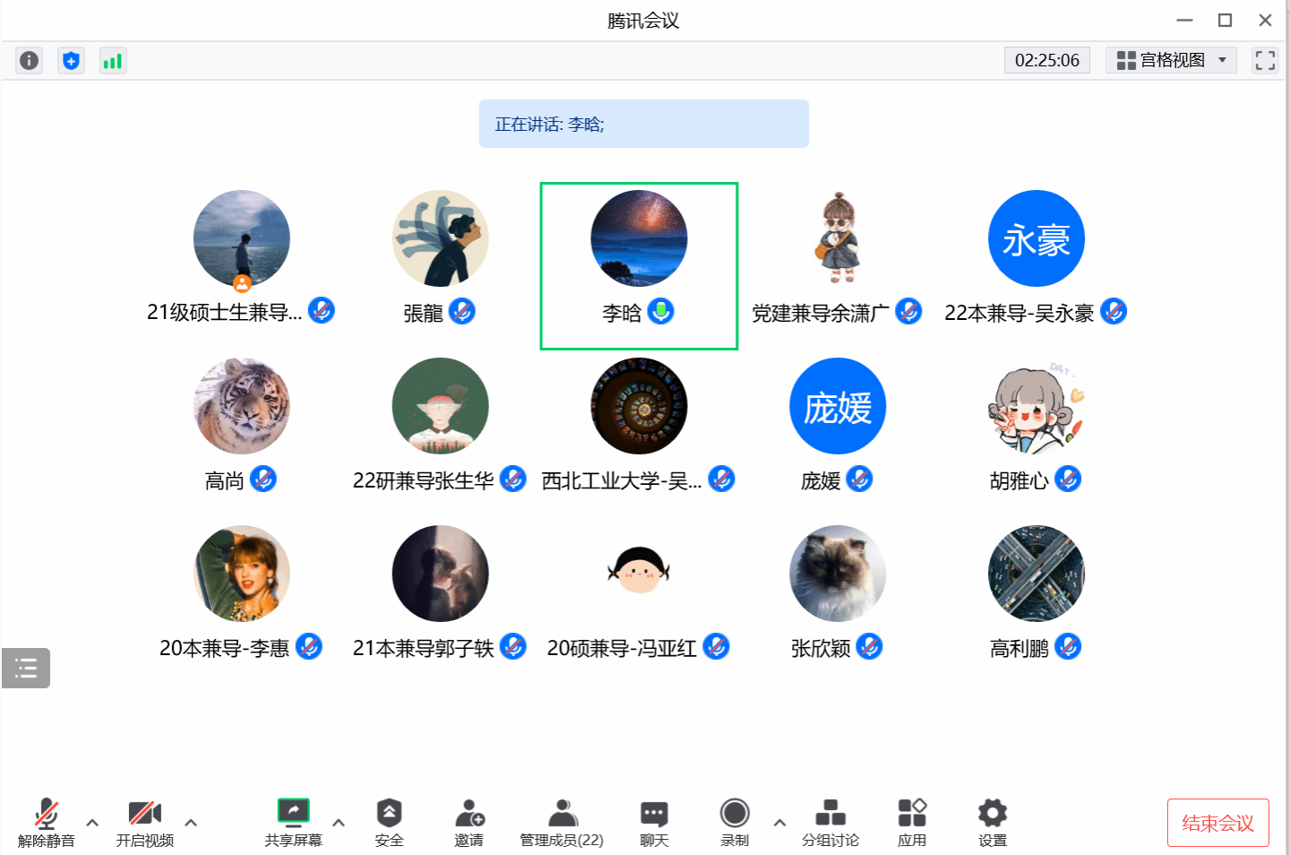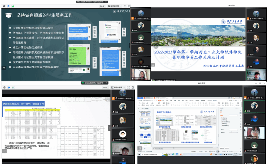 党委副书记(主持工作)李晗、党委副书记张龙、各专职辅导员、学生工作助理和兼职辅导员通过线上方式参会。会议由研究生学生工作助理王菲主持。