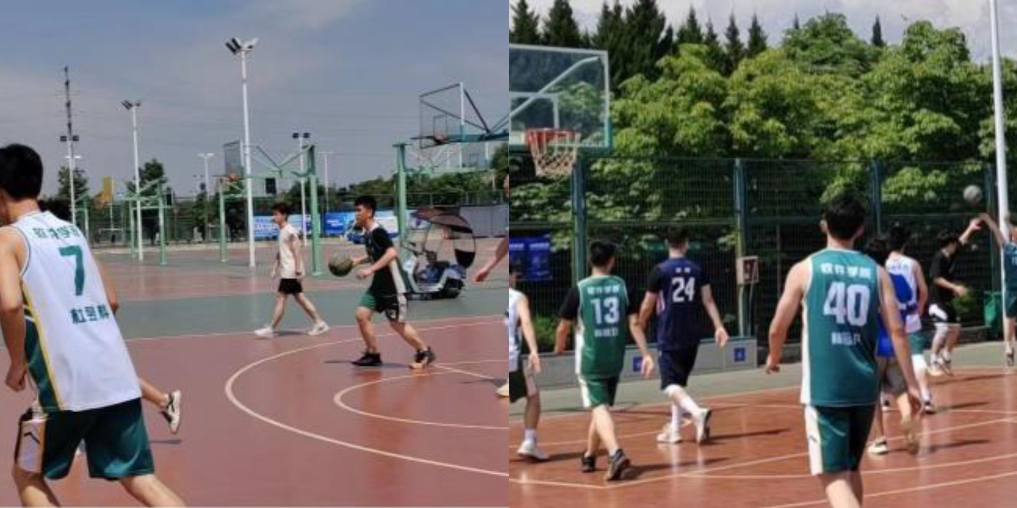 骄阳似火,挡不住热烈的师生情谊。随着开场哨的吹响,双方队员灵活跑位、机敏抢球、漂亮回防、精彩投篮,你来我往,比分交替上升,赛场上也传来阵阵加油声和助威声,参赛师生凭借队员间完美的配合和娴熟的技巧,为大家呈现了一场精彩绝伦的篮球赛。全场比赛分为上下半场,共30分钟。最终毕业生队以47:45的比分获得胜利,每一位参赛选手都秉持友谊第一、比赛第二的体育精神,赛出了风度和风采。
