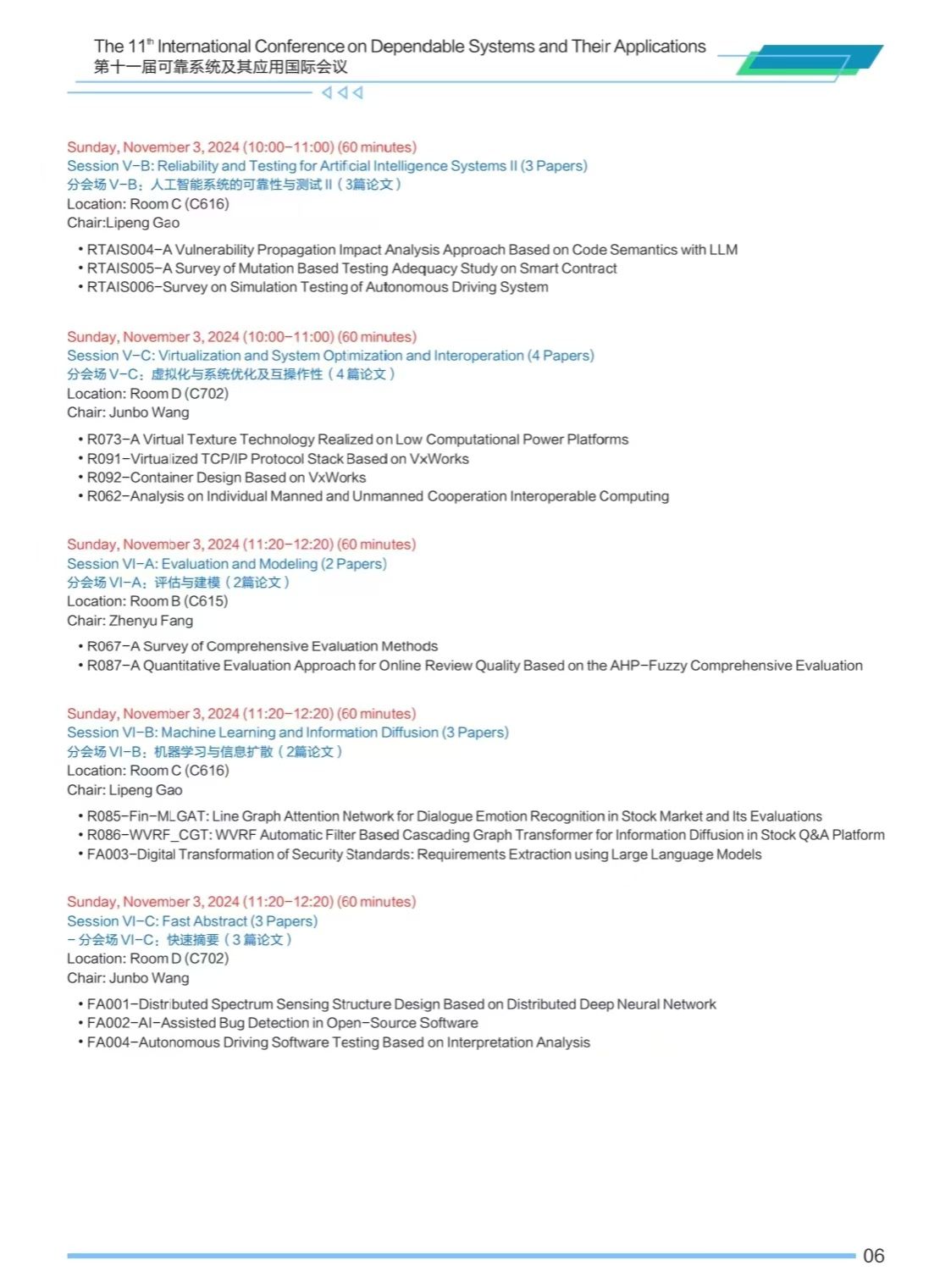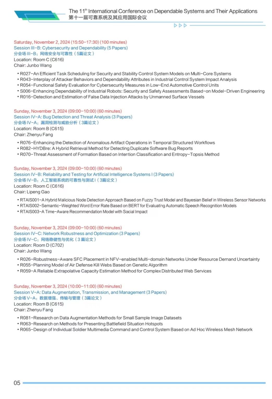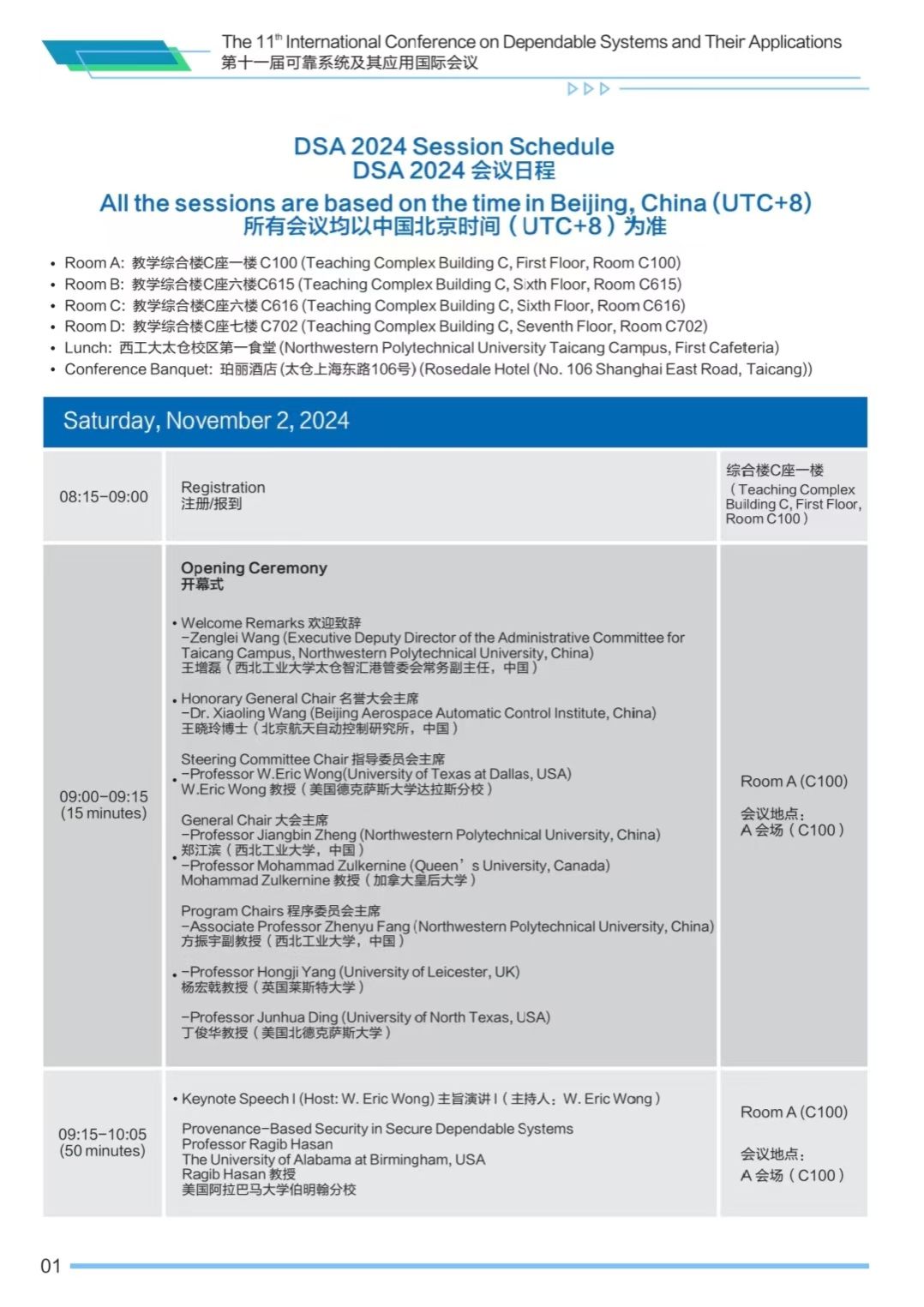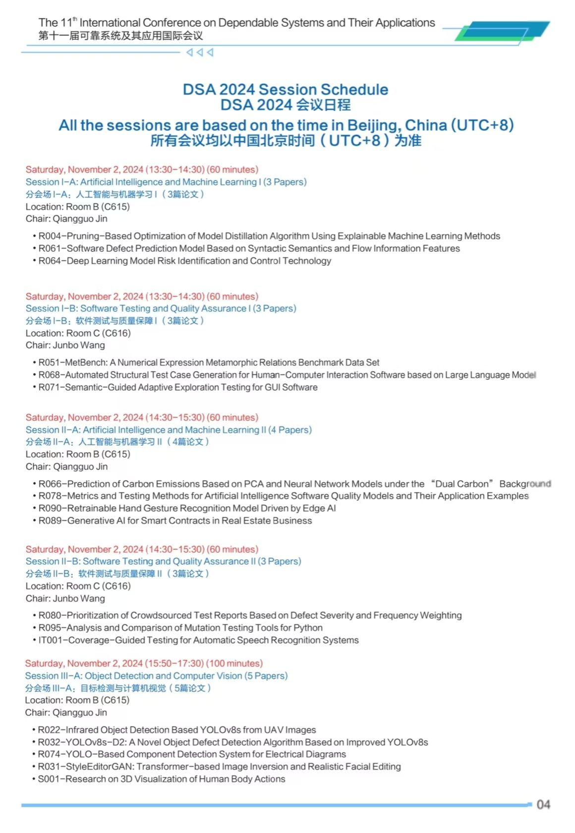 第十一届可靠系统及其应用国际会议(DSA 2024)将于2024年11月2日-3日在情色小说 太仓智汇港举办,会议安排如下,欢迎各位专家学者参会交流。