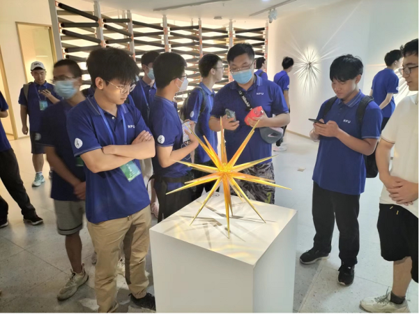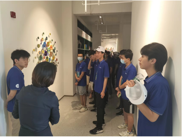经过一段时间的等待,同学们开始参观国际设计研究中心。在负责人的悉心讲解下,同学们依次浏览了试管树、艺术屏风、金属折纸、新型材料艺术、空间画和其他的一些艺术作品,同时也了解到这些艺术作品背后的故事以及它们中寄寓的含义。在参观过程中,同学们的人文素养与艺术鉴赏能力得到了提升,增进了对艺术文化的了解,加深了对艺术的兴趣。