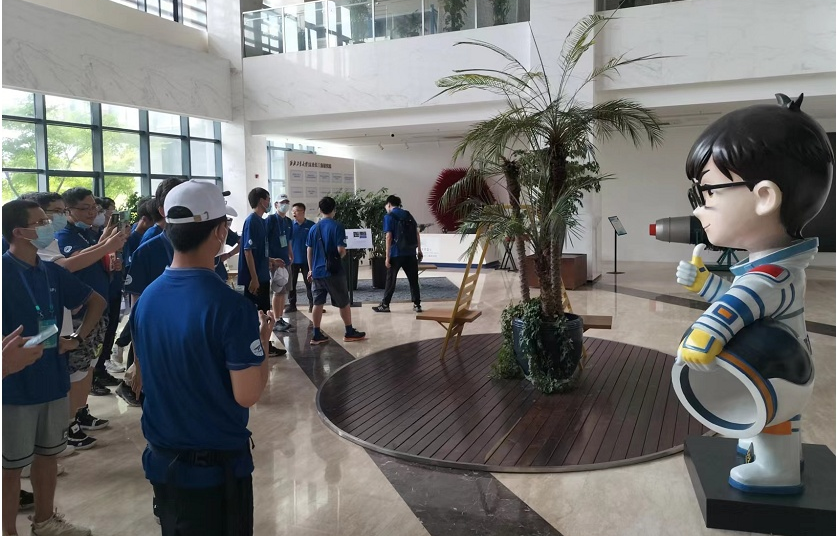 下午2时许,同学们分批乘坐大巴抵达了长三角研究院。在大厅看到了“熟悉的老朋友”,同学们纷纷带着笑意打卡留念。