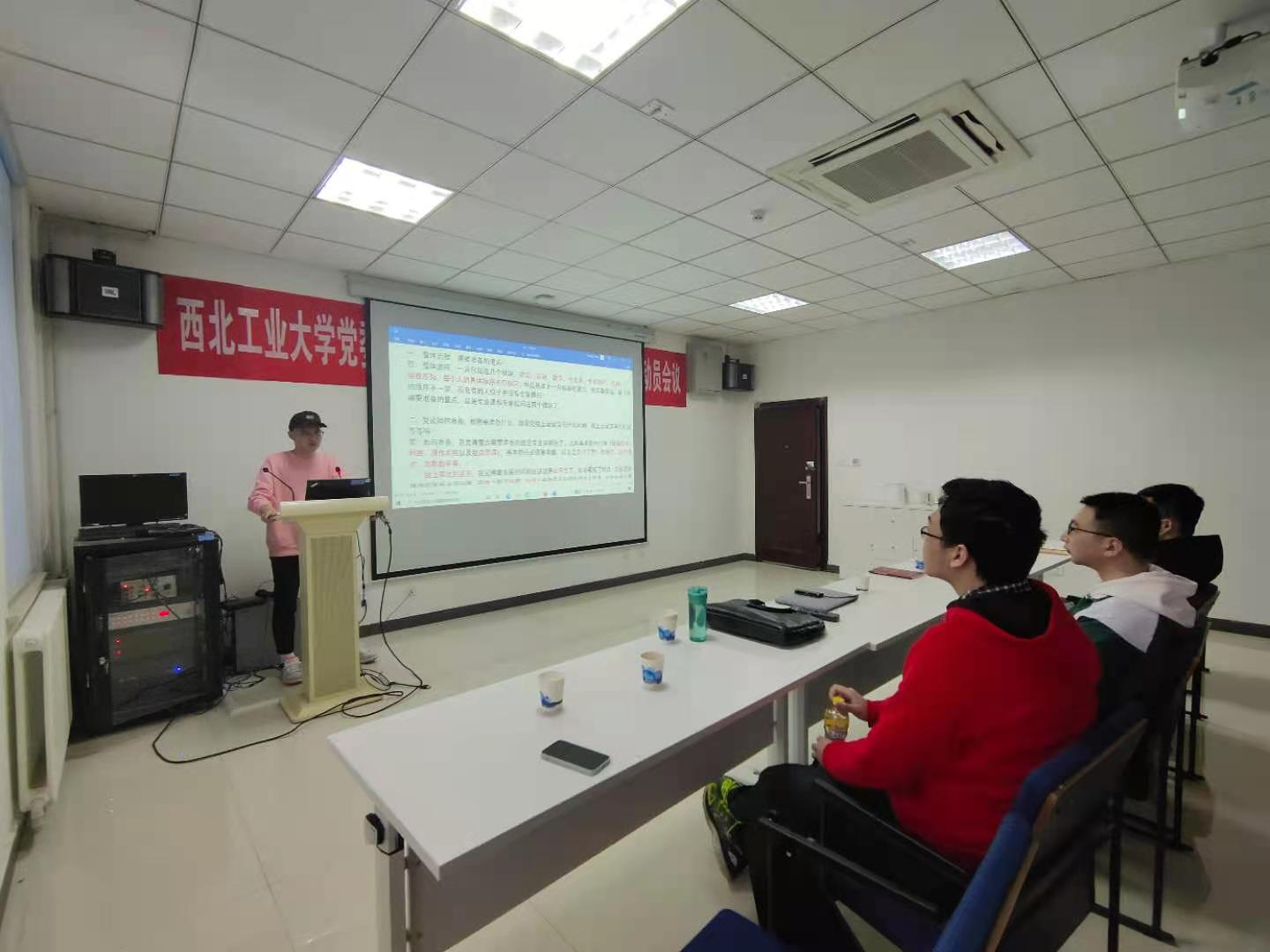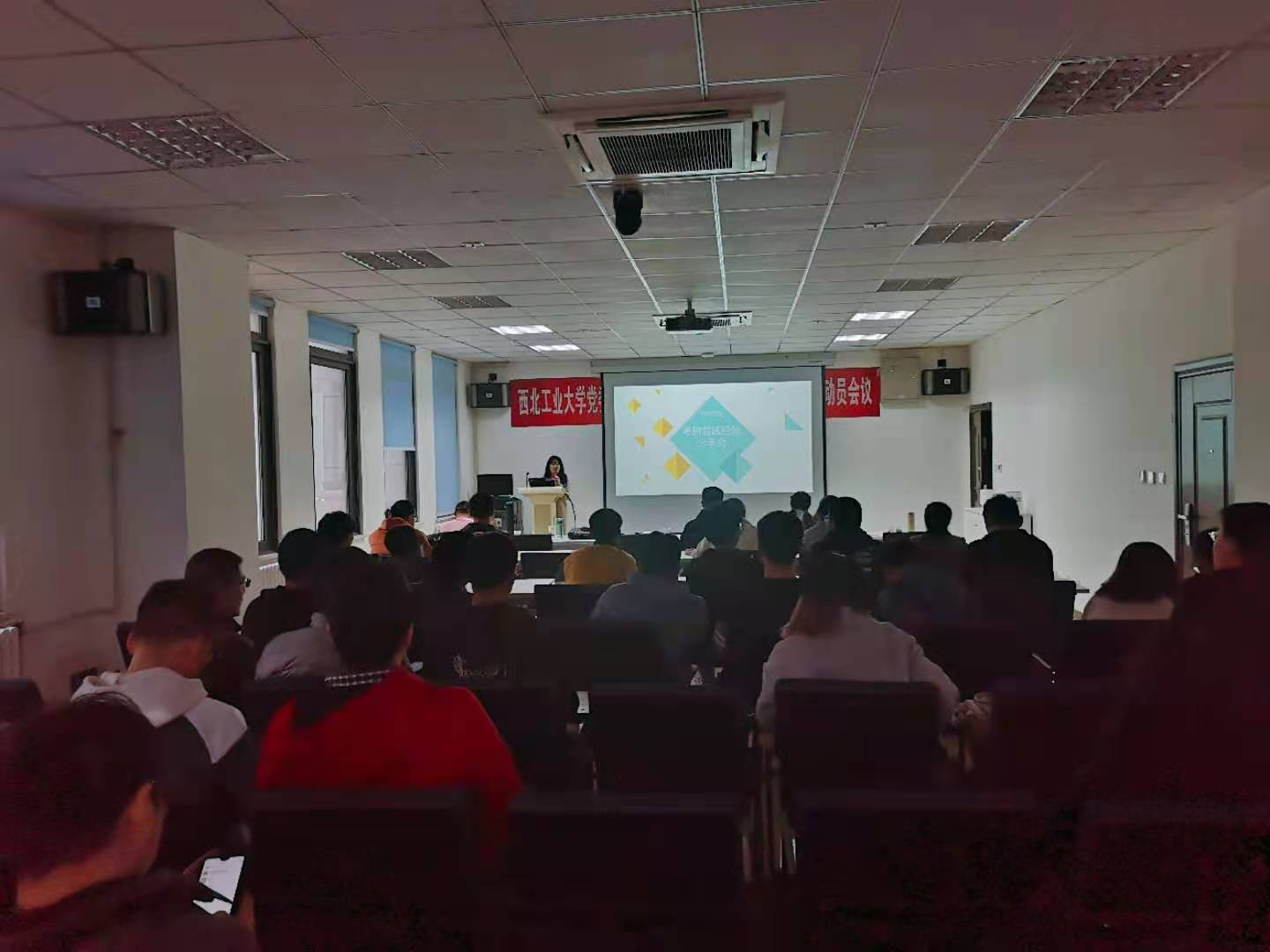 研究生宋志昕同学和侯博元同学、计算机学院研究生汪悦同学以及网络空间安全学院研究生路高乐同学,会议由2017级本科生辅导员陈智通老师和本科生兼职辅导员冯钰晴老师主持,50余名考研学生共同参加。