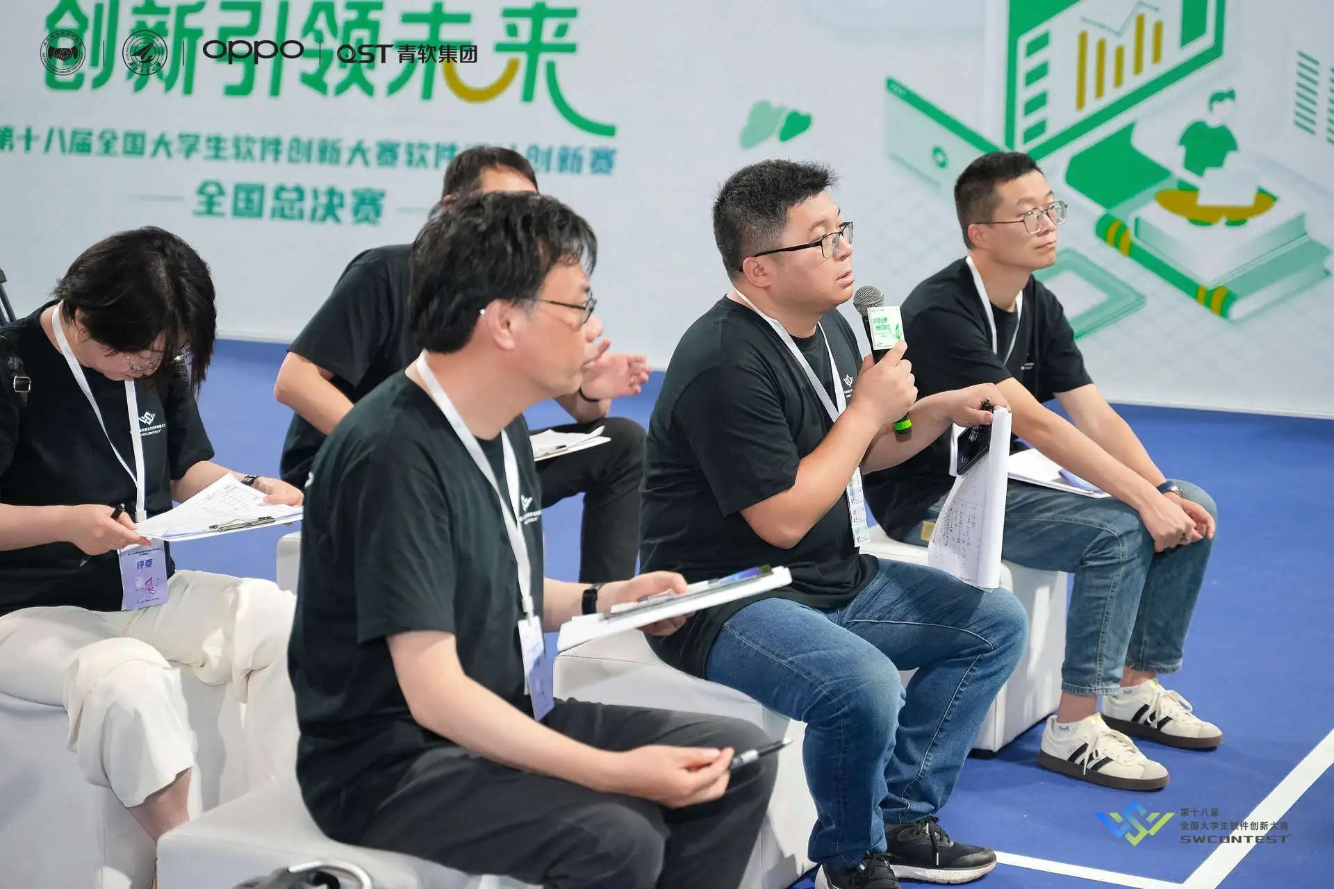5月23日,在第十八届全国大学生软件创新大赛—软件设计创新赛全国总决赛现场,45支高校团队围绕AI技术展开创新角逐。路演分A、B两组同步进行,A组22个作品覆盖“AI+安全、AI+互联互通、AI+图形图像、AI+应用创新”四大赛题,B组23个作品聚焦“AI+应用创新”,参赛选手们通过路演、答辩、问答等环节,对作品进行全方位展示。