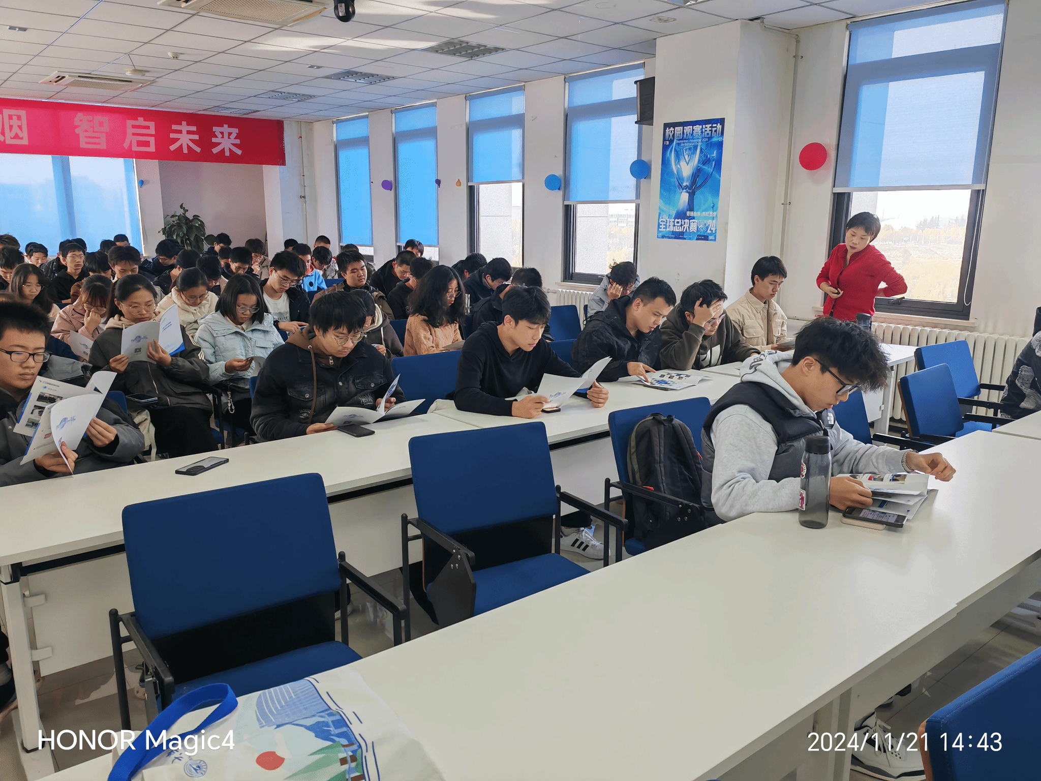 周玲介绍了学生创新创业实践工作的开展情况,并为大家准备了内容详实的工大翱翔众创空间的宣传手册,重点说明了学生创新创业项目培育、孵化服务、政策支持等情况,细致讲解了工大翱翔众创空间学生创新创业团队的入孵条件、入孵流程。