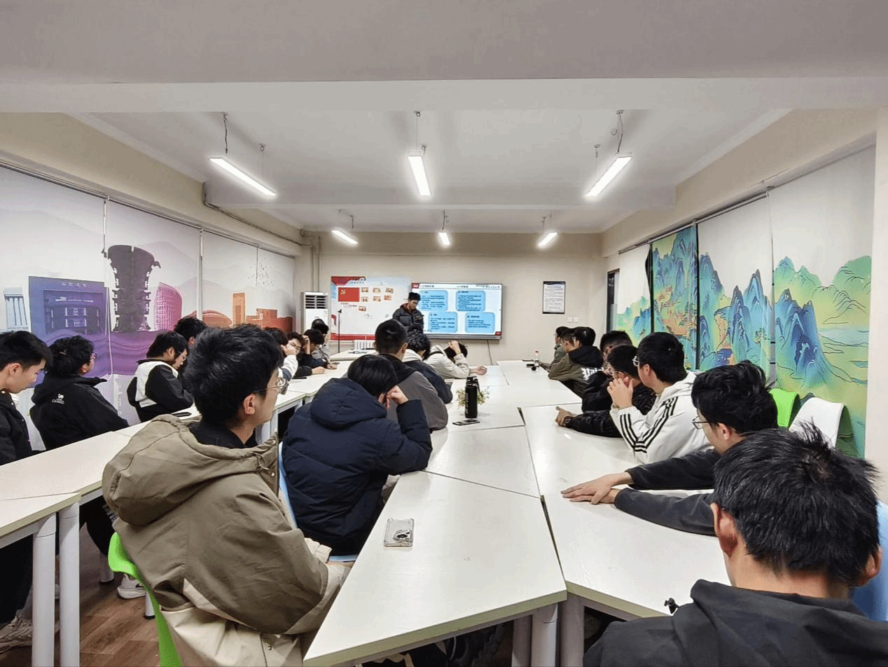为深入学习贯彻习近平新时代中国特色社会主义思想,全面贯彻落实党的二十大和二十届二中、三中、四中全会精神,引导同学坚定理想信念、增强使命担当,12月3日,2025级软件拔尖班在星天苑G座一楼思创空间组织开展了“立报国强国大志向,做挺膺担当奋斗者——软件书写时代,青春赋能现代化”主题班会。班会紧扣“中国式现代化”这一时代主题,融合专业特色与青年视角,通过理论学习、互动分享、实践交流等多种形式,引领同学们在思想碰撞与情感共鸣中,凝聚起“挺膺担当、专业报国”的行动共识。