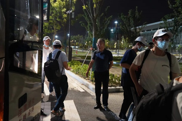 同学们乘坐大巴前往西安北站