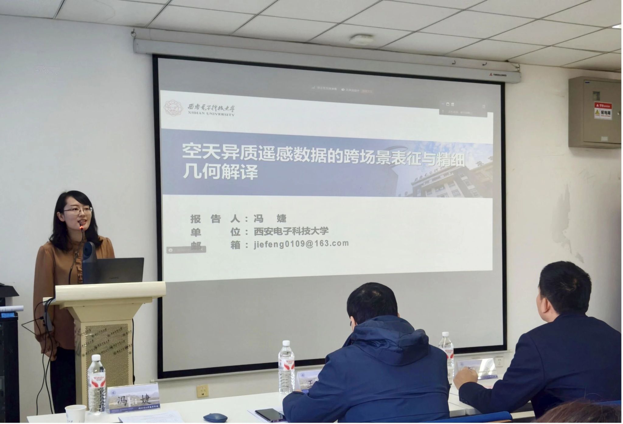 西安电子科技大学人工智能学院的冯婕教授作了题为“空天异质遥感数据的跨场景表征与精细几何解译”的报告,聚焦跨源表征学习与目标精细解译,梳理技术脉络瓶颈,阐述相关成果及星载工程的转化。