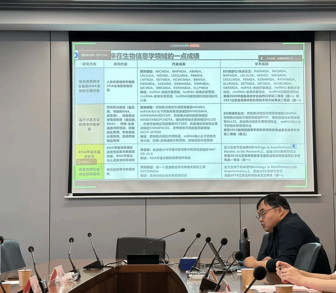 邀请江南大学理学院陈兴教授、中国科学技术大学苏州高等研究院杜文杰副研究员在太仓智汇港为师生做《基于智能算法的药物组合预测》与《分子关系的建模逻辑:结构选择、机制提取与型扩展》学术报告。报告会通过线上线下相结合的形式开展,西安、太仓两校区师生同时参加。